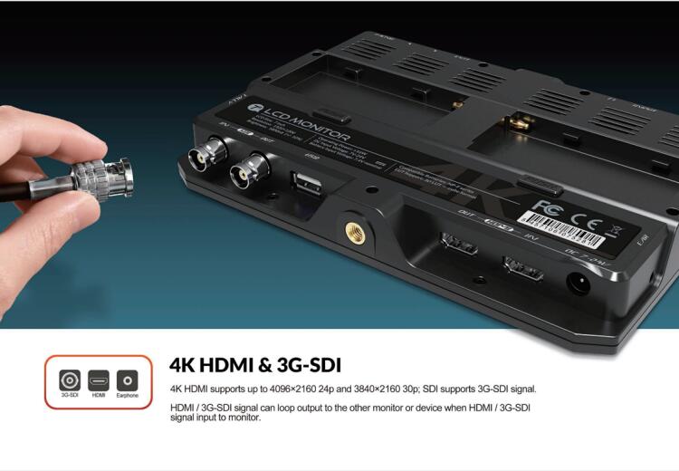 * 7" 4K Ultra Brightness On-Camera Monitor